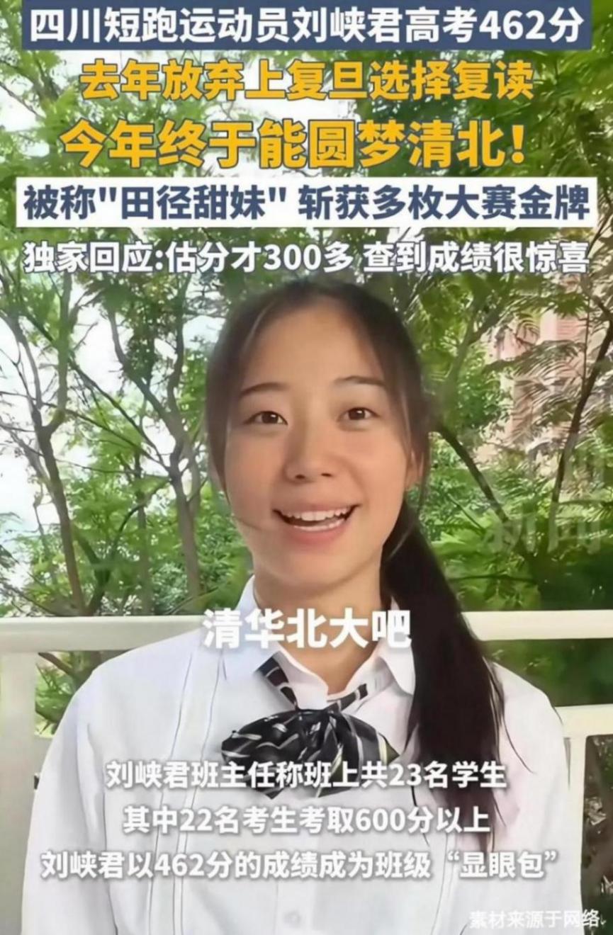 19歲的劉峽君是四川宜賓東辰學校的高三學生,她高考只考了462分,是全班最后一名,整個班級23個同學,其余22人都考了600分往上的好成績。