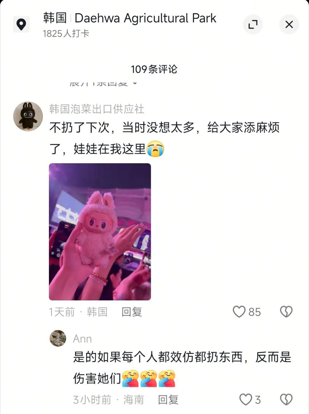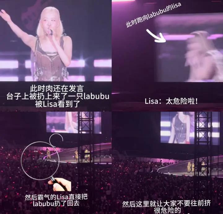 那么,為什么在這次演唱會上,Lisa面對粉絲拋出的Labubu卻顯得有些猶豫不決呢?有粉絲解釋說,之前就有粉絲在娃娃身上安裝針孔攝像頭,這種行為顯然違反了演唱會的規(guī)定。而且,據這位粉絲透露,演唱會本就有規(guī)定不能對著臺上的演出人員丟東西。這位粉絲的行為顯然是明知故犯,讓Lisa忍不住忘了表情管理,神情顯得有些不悅。
