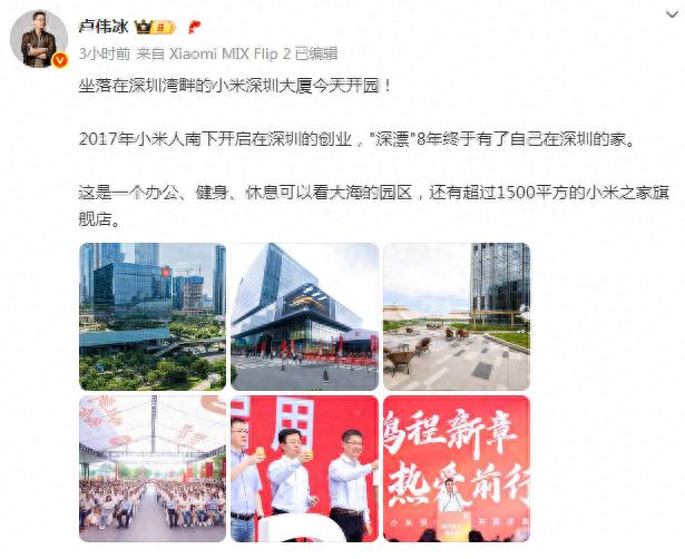 7月18日,小米深圳總部大廈正式啟用,小米集團合伙人、集團總裁盧偉冰等高管出席了儀式。