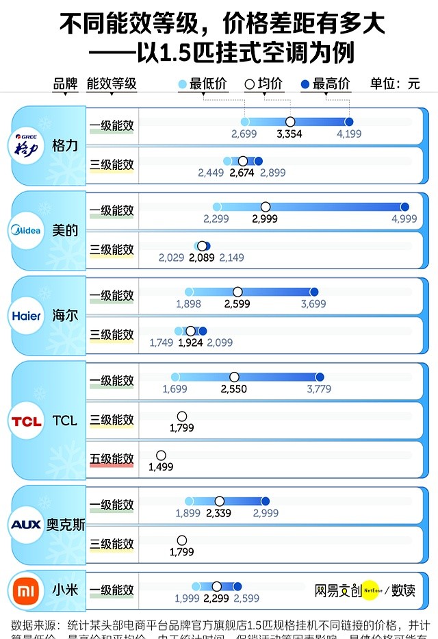 其實,有些一級能效空調(diào)也就一千多,比三級能效還便宜。