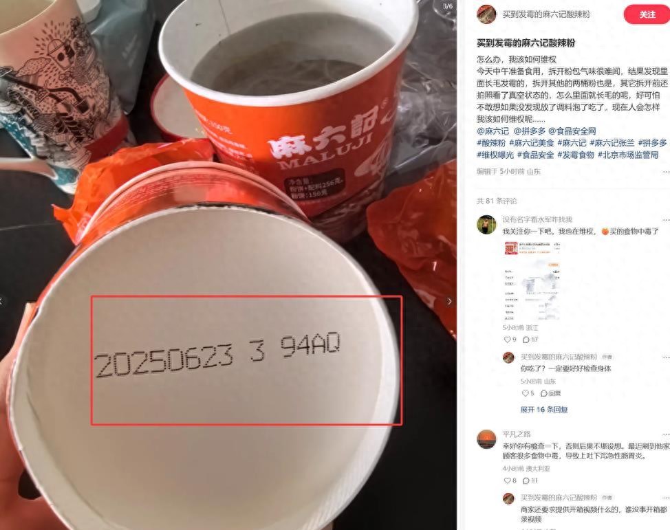 7月28日下午,麻六記也道歉了。麻六記通過官方微博發布聲明稱,麻六記確認問題的產品涉及兩個生產批次,其已經啟動召回程序,將全力推進退貨及妥善的補償方案。麻六記對此致以歉意。