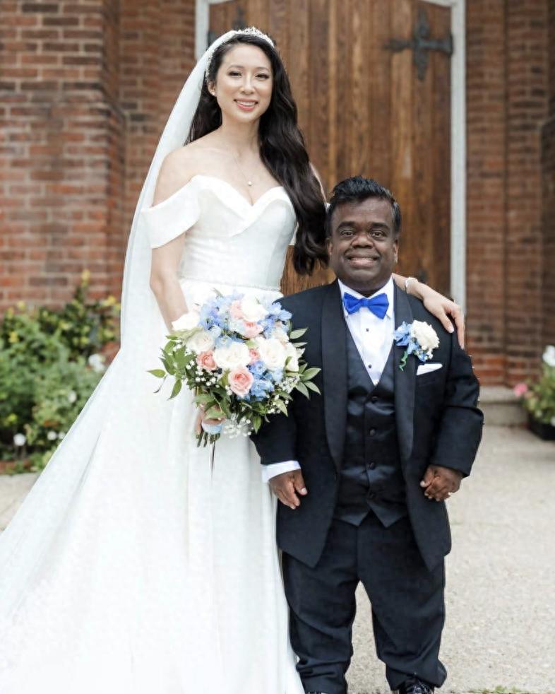 8月4日報道,加拿大一名身高1.62米亞裔美女嫁給1.2米印度裔丈夫,加拿大籍電影制作人安妮塔·溫·李身高1米65,擁有工商管理碩士學位,卻選擇與一位身高1米05的非洲慈善工作者攜手步入婚姻殿堂。