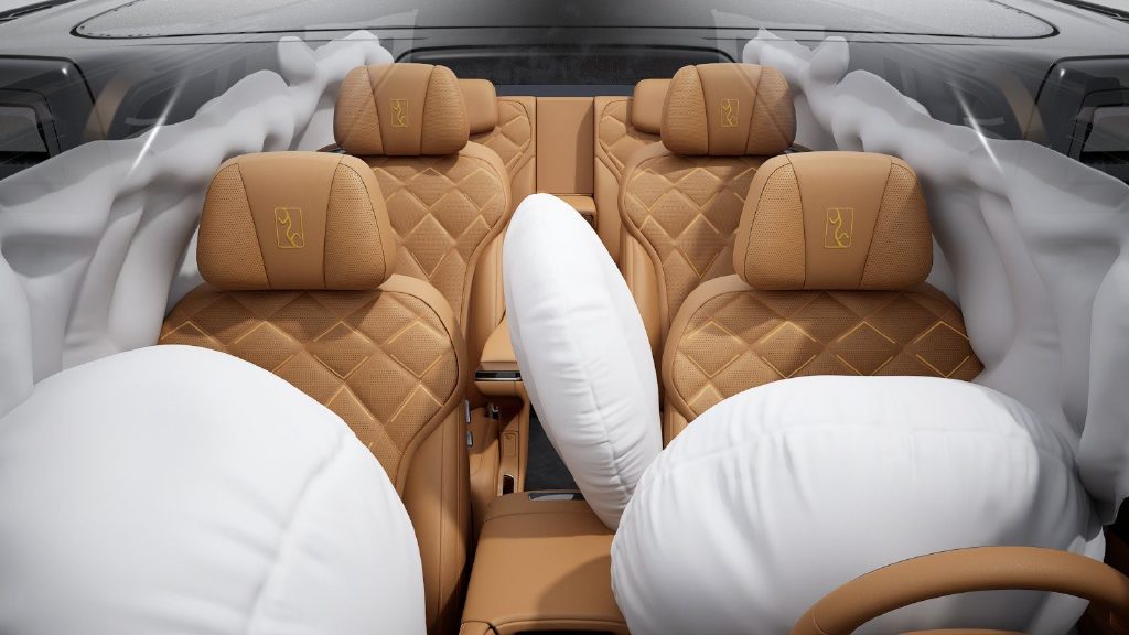 被動安全配置拉滿:標配碳陶剎車盤,緊急制動更高效;二排零重力座椅帶主動回位技術,識別碰撞風險時自動調(diào)至安全角度;預緊限力安全帶、14個安全氣囊、遠近紅外夜視系統(tǒng)悉數(shù)標配,織就無死角防護網(wǎng)。