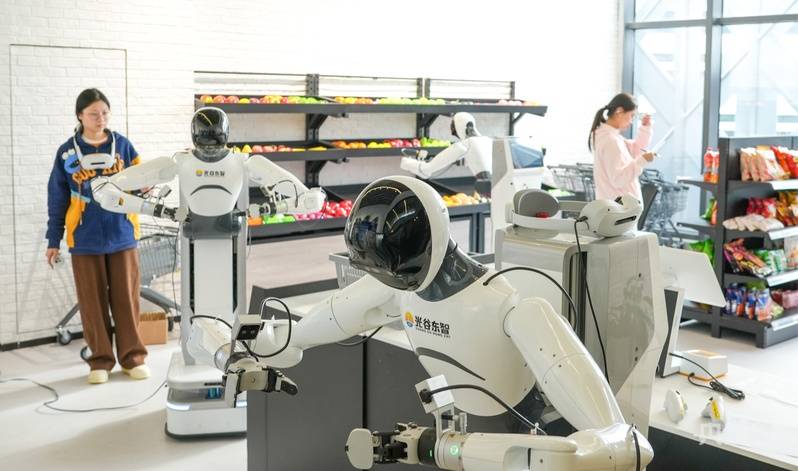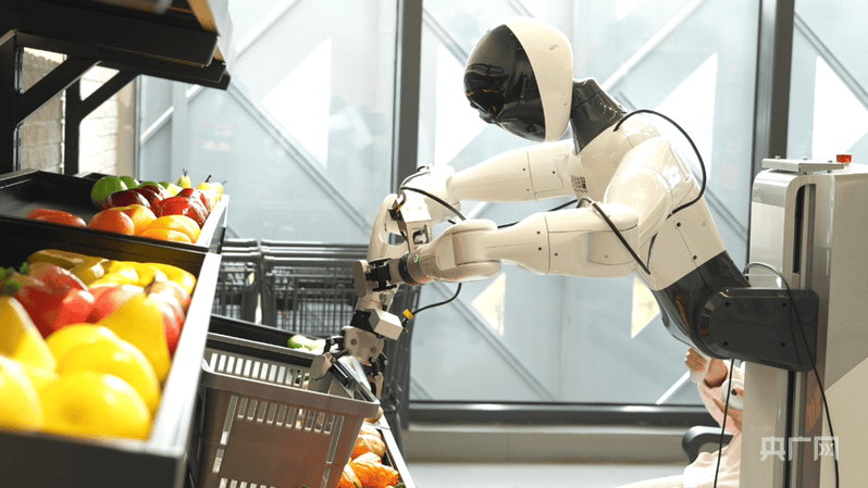 人形機器人在超市零售場景應用訓練(央廣網記者鄧子依 攝)