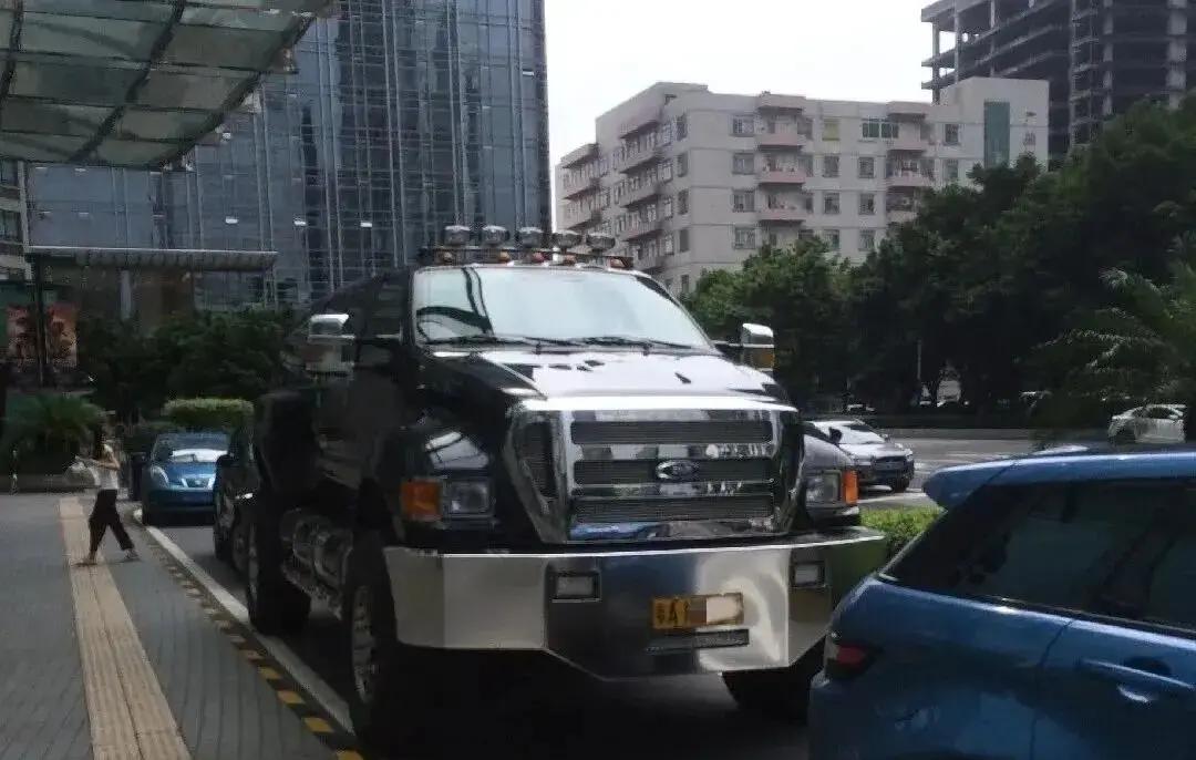 廣州街頭出現一輛全身噴著黃漆的大塊頭,個頭比考斯特還高,第一眼看過去像是油罐車開錯了路,但仔細一看才知道,是一輛福特F650,美式巨無霸皮卡,實打實的卡車級別。路人圍觀,都覺得挺新鮮,畢竟這樣的車型哪怕在國內見上一回,都能成街頭新聞。